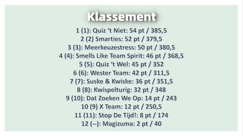 12: X Team: 36,5 pt (45,1%)